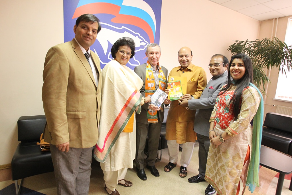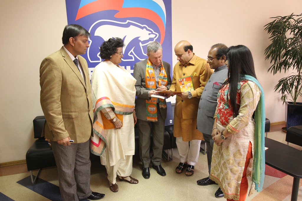 Член Президиума Генерального совета Партии «Единая Россия», заместитель председателя Комитета по международным делам Совета Федерации Андрей Климов провел в Москве в понедельник, 28 апреля, консультации с индийской политической партией «Бхаратия джаната парти», делегацию которой возглавлял Национальный секретарь партии Арти Мехра.