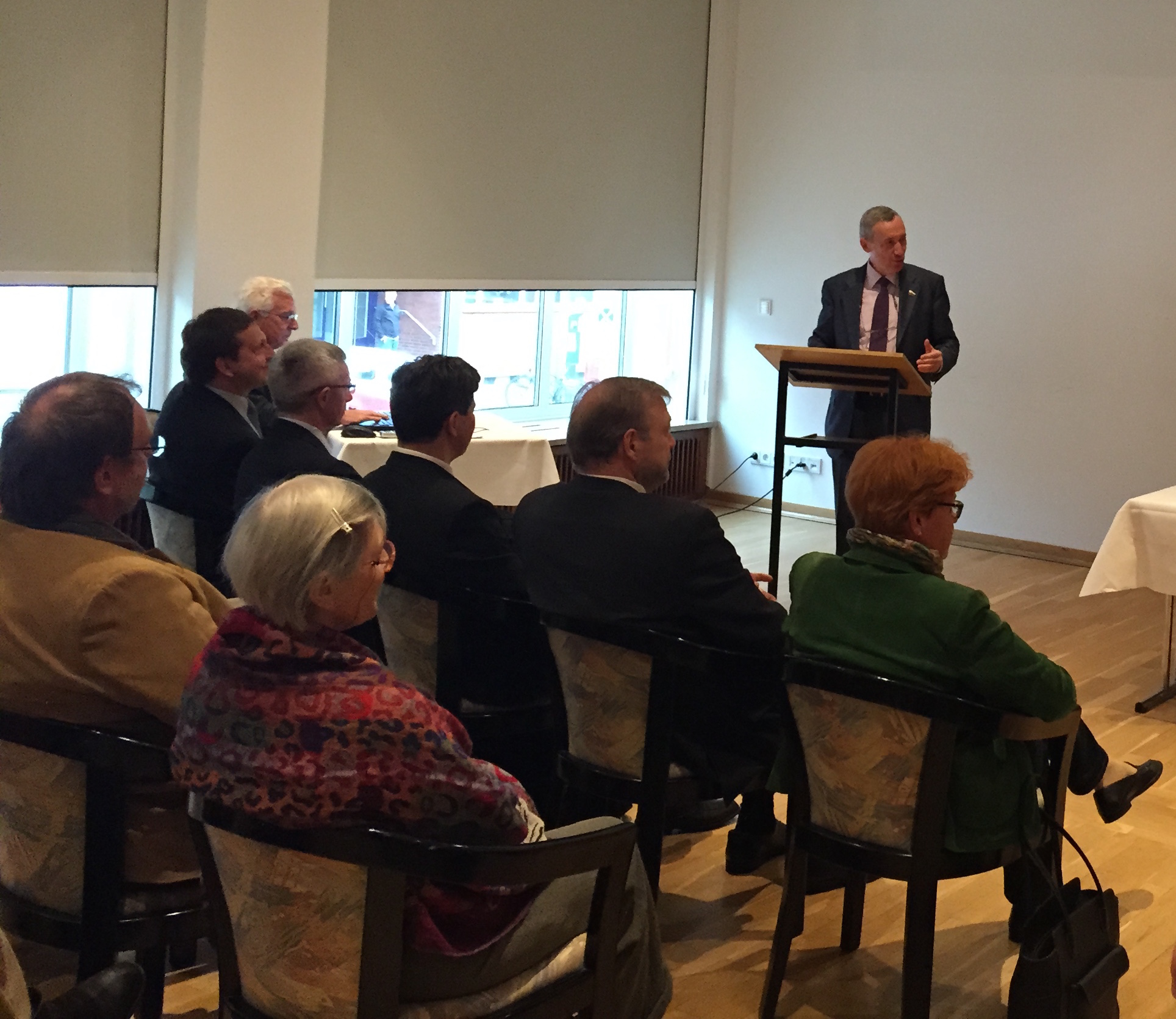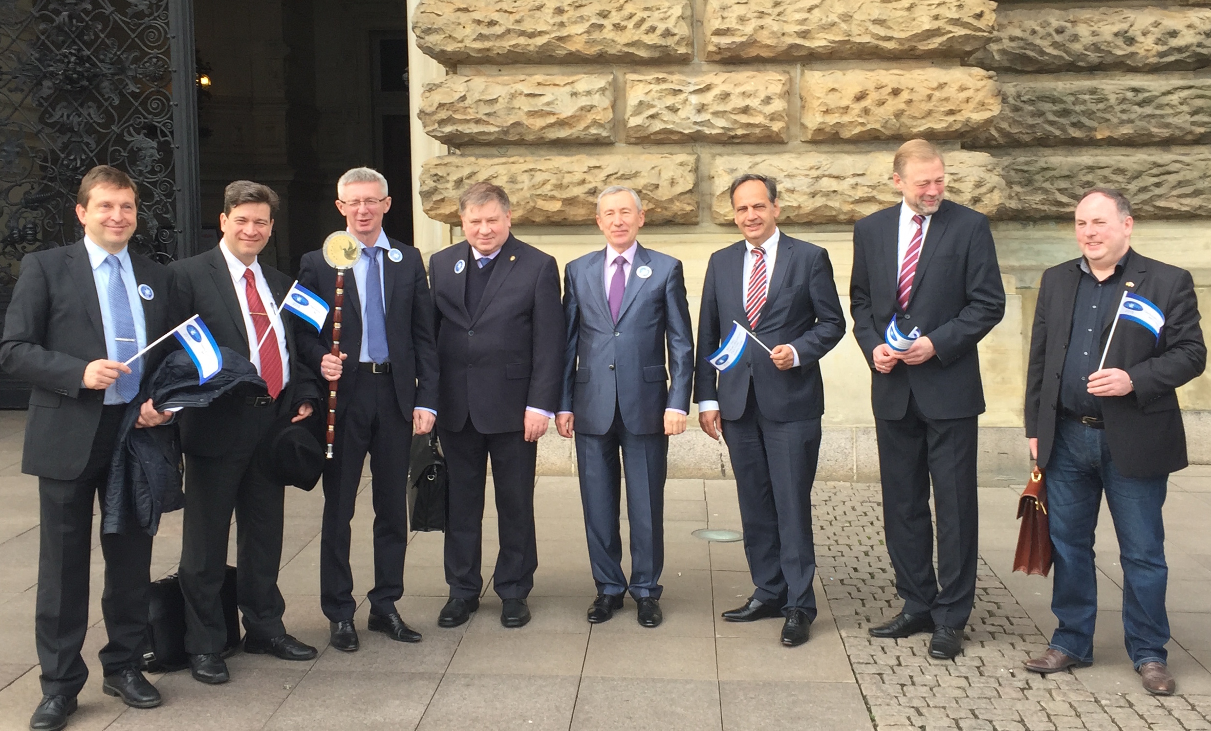 В начале своего приветственного выступления член российского парламентского Европейского клуба, Евродепутат г-н Кнут Флекенштайн напомнил присутствующим о знаменательной дате — 70-летии Великой победы и поблагодарил Россию за освобождение Германии и всего мира от фашизма.