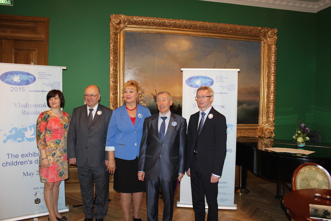 После старта на площади делегация Марафона отправилась в Приморскую картинную галерею и открыли там выставку рисунков детей со всей России. Основными темами детских работ были Год Литературы в России и 70-летие Победы над Фашизмом.